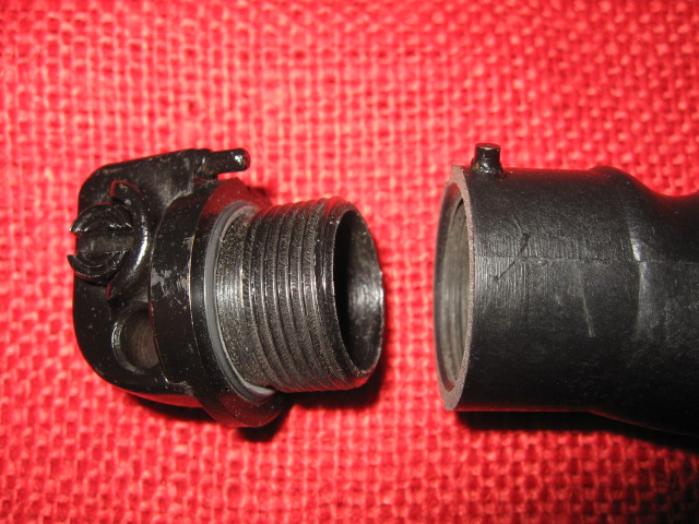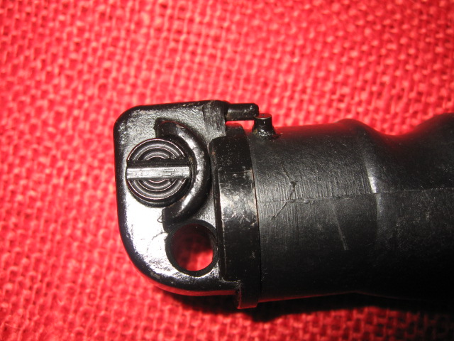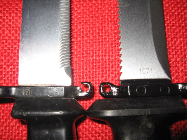 Here are some more features of the KM87 Bayonet. Note that the removable pommel contains a rubber "O" ring that fits in to a recess on the hollow grip to make it water proof. Another note, the pins on the pommel and grip that align them when the pommel is in place. Also note that the pommel is numbered to match the blade. However for some unknown reason there are no matching numbers on the scabbards. Mike