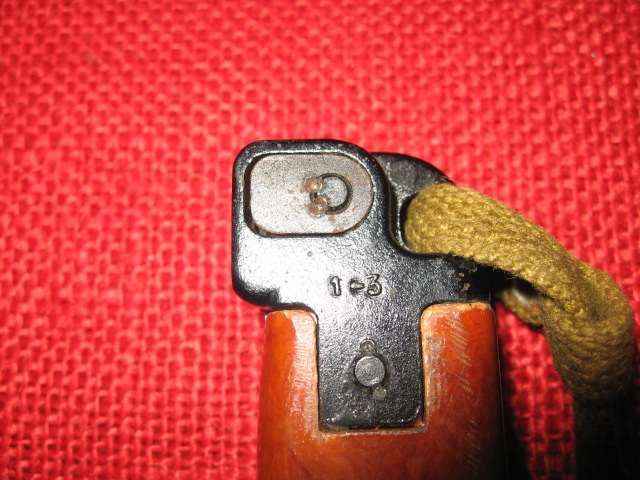 As you can see no serial numbers on the bayonet or the scabbard.