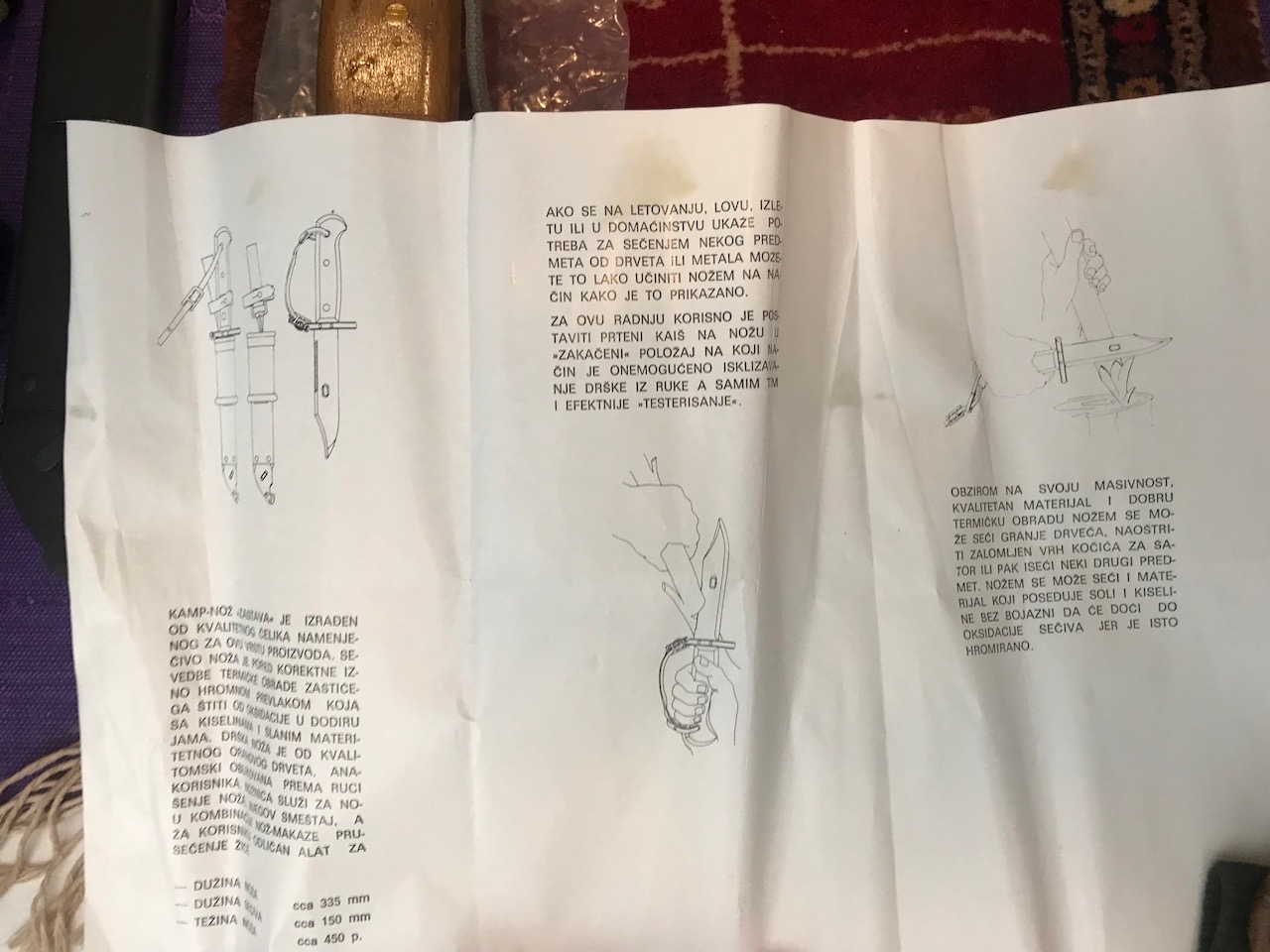 Another thing to consider is if this knife is even Yugoslavian at all? This is a translation of the front of the instructions. Camp Knife Flag. Features and Operating Instructions. Red Flag Institution, (Company?). Kragujevac, (SERBIA!). Mike