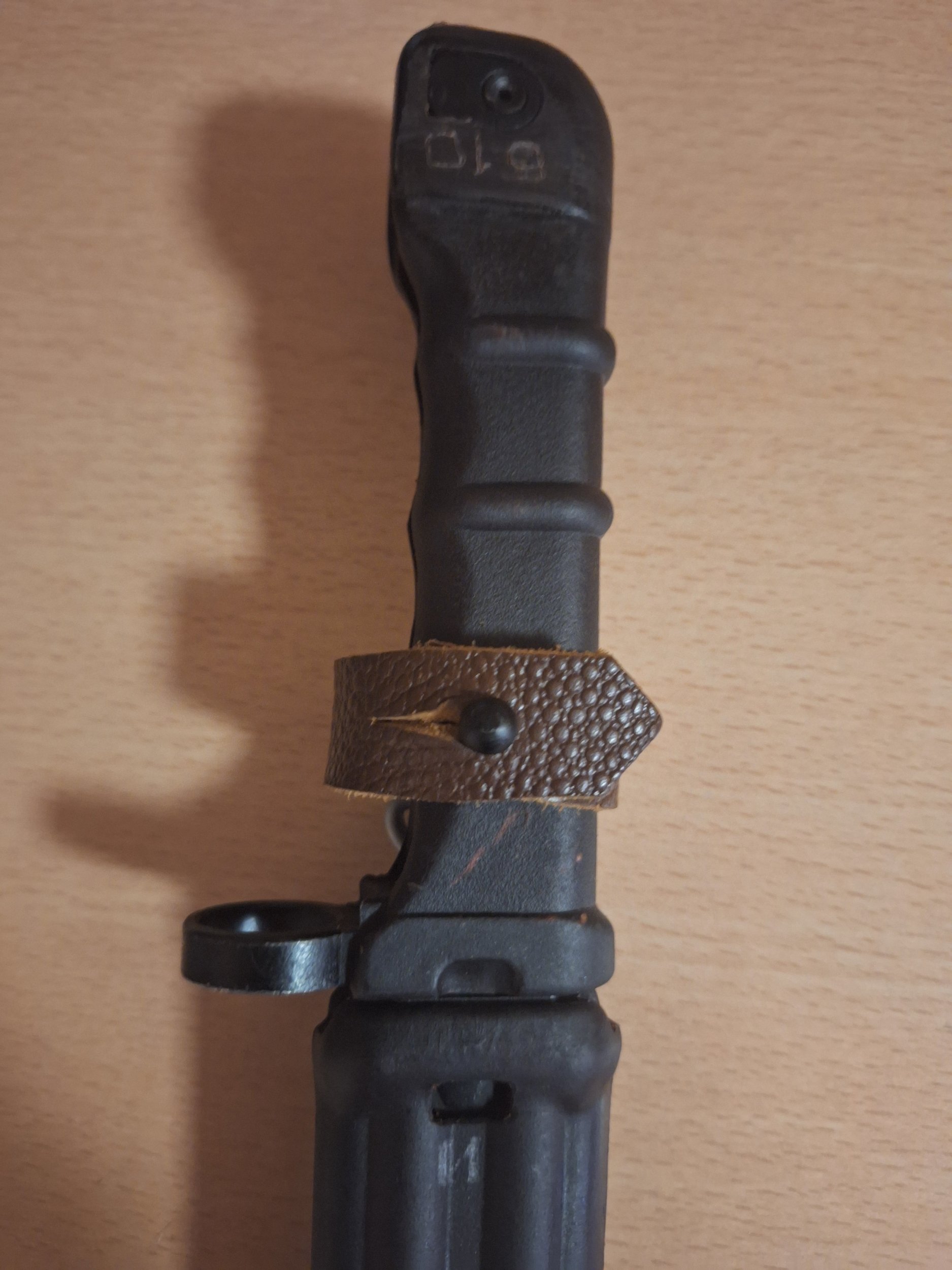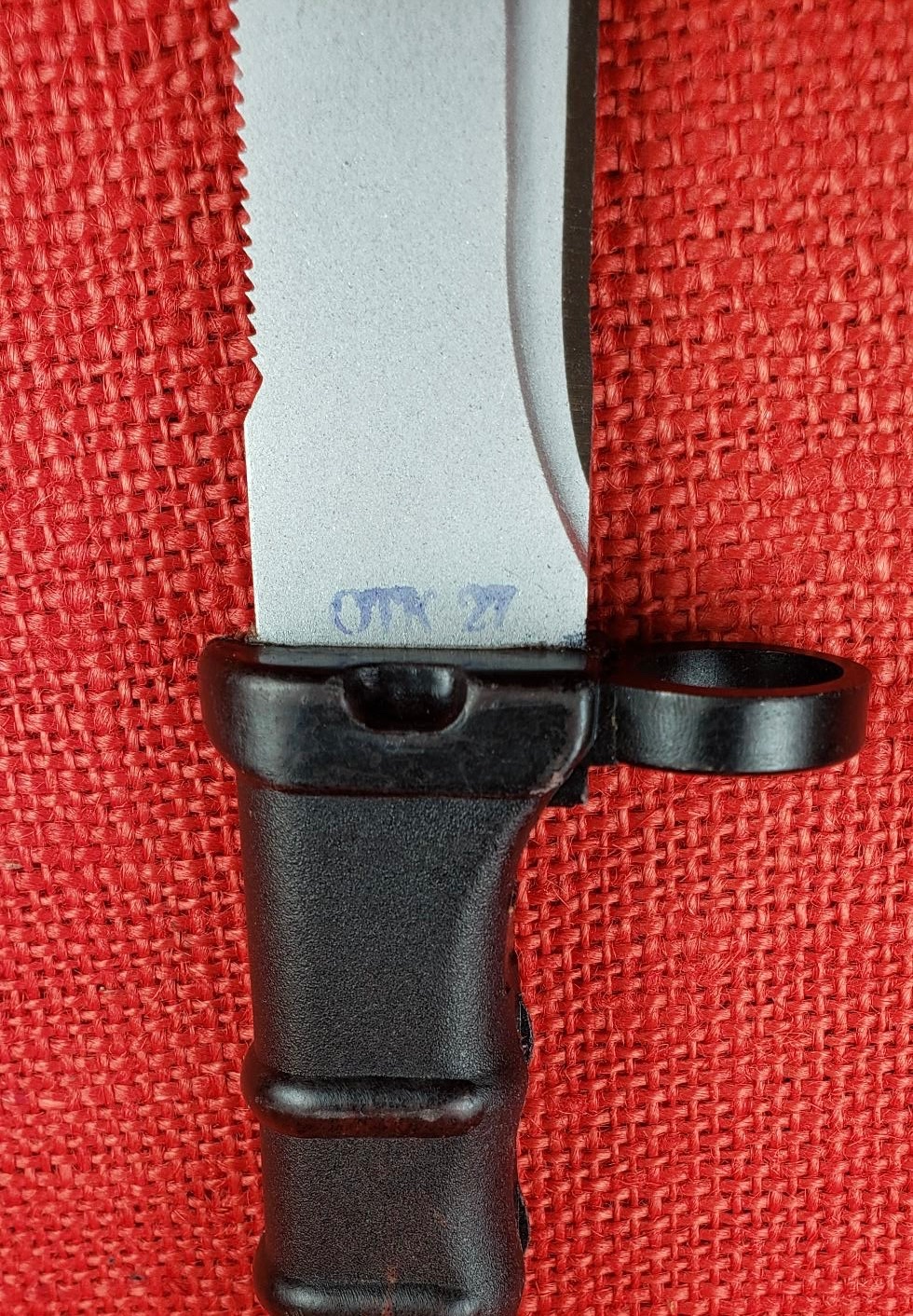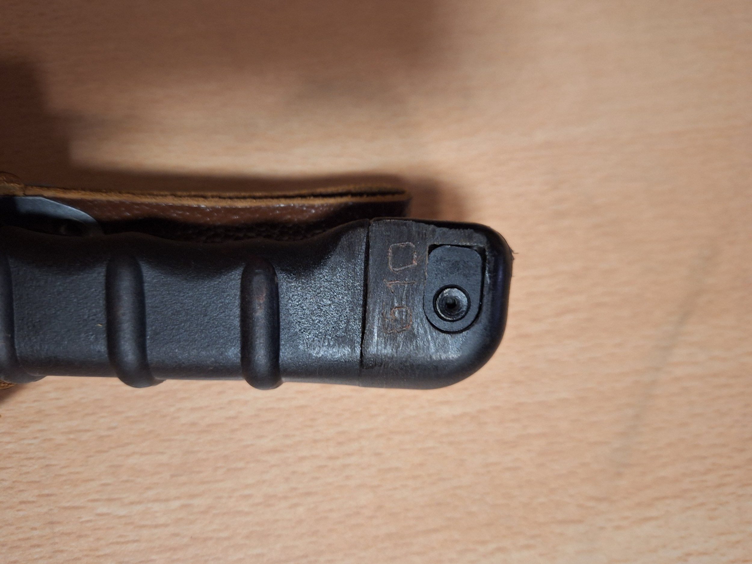 Hi Bas, I am not sure what to tell you. It appears to me to an original, as issued, Russian AK74 6X5 bayonet and scabbard. It is the early first variation with the narrow crossguard. Mine is Plum colored with specks. I can not tell if yours is plum or black from your pictures. I understand about the missing or different markings. Both the bayonet and scabbard should have the raised mold numbers. The inspection and proof marking are usually on the ricasso. I have never seen them on the flat area behind the muzzle ring? The ink stamps are easily removed when cleaning especially with solvents. The hand etched issue numbers indicate it was paired with a weapon.