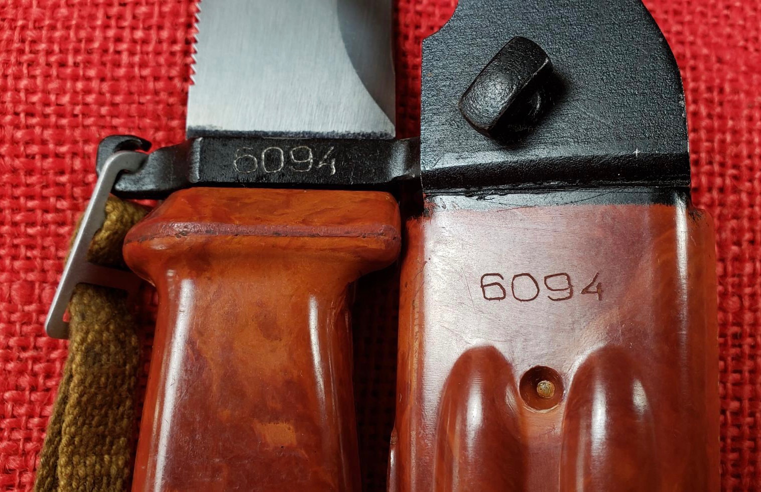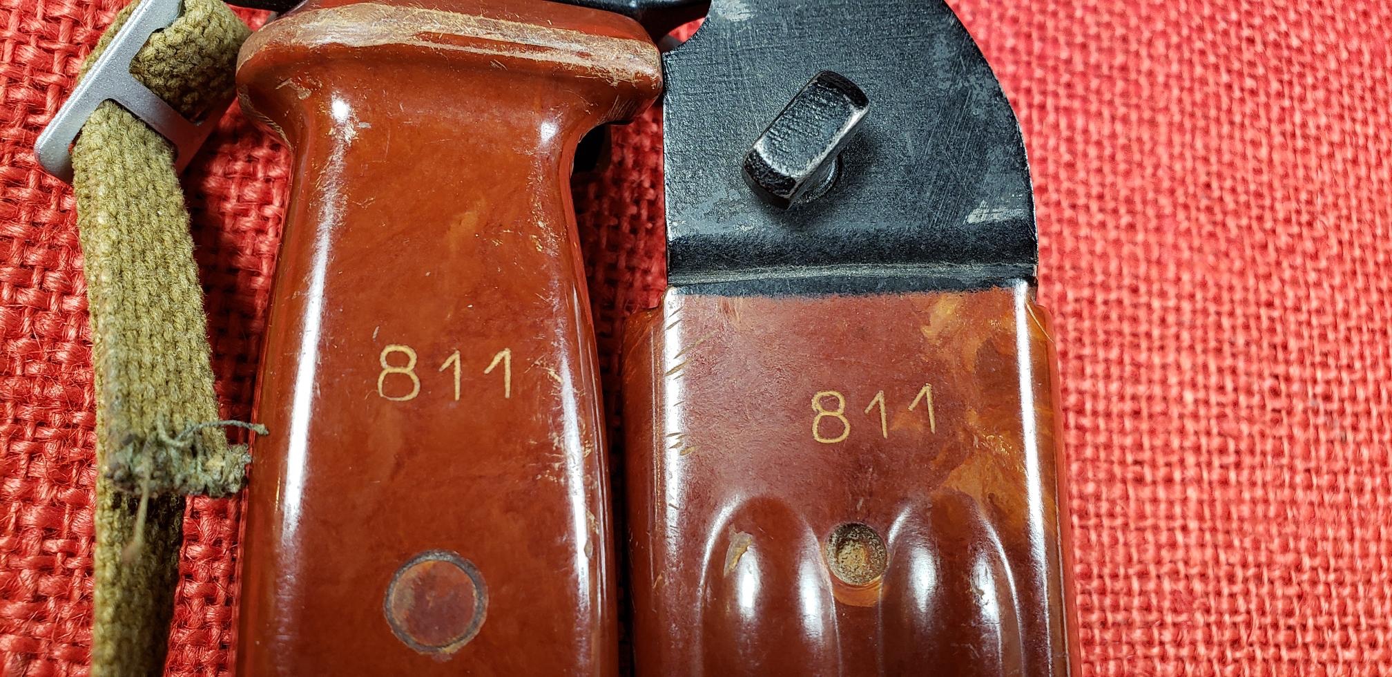 Very nice examples! For me, the Russian AKM 6X4 Type I bayonets and scabbards are the stars of a Russian collection. It is possible to have them as a complete stand alone collection. It’s possible to have 20-30 examples. Different arsenals, different mold and stamp marks in different positions, different small variations from early to late production. Different belt hangers and wrist straps to match up with production variations. Also the 2 different original Type I to Type II transitionals from the 2 arsenals. Look for original production variations in the best possible condition. Re-worked examples with miss-matched and forced match numbers should be avoided as any combination is possible and usually wrong. Read all the posts here to learn of all the possibilities. Cheers, Mr. B.