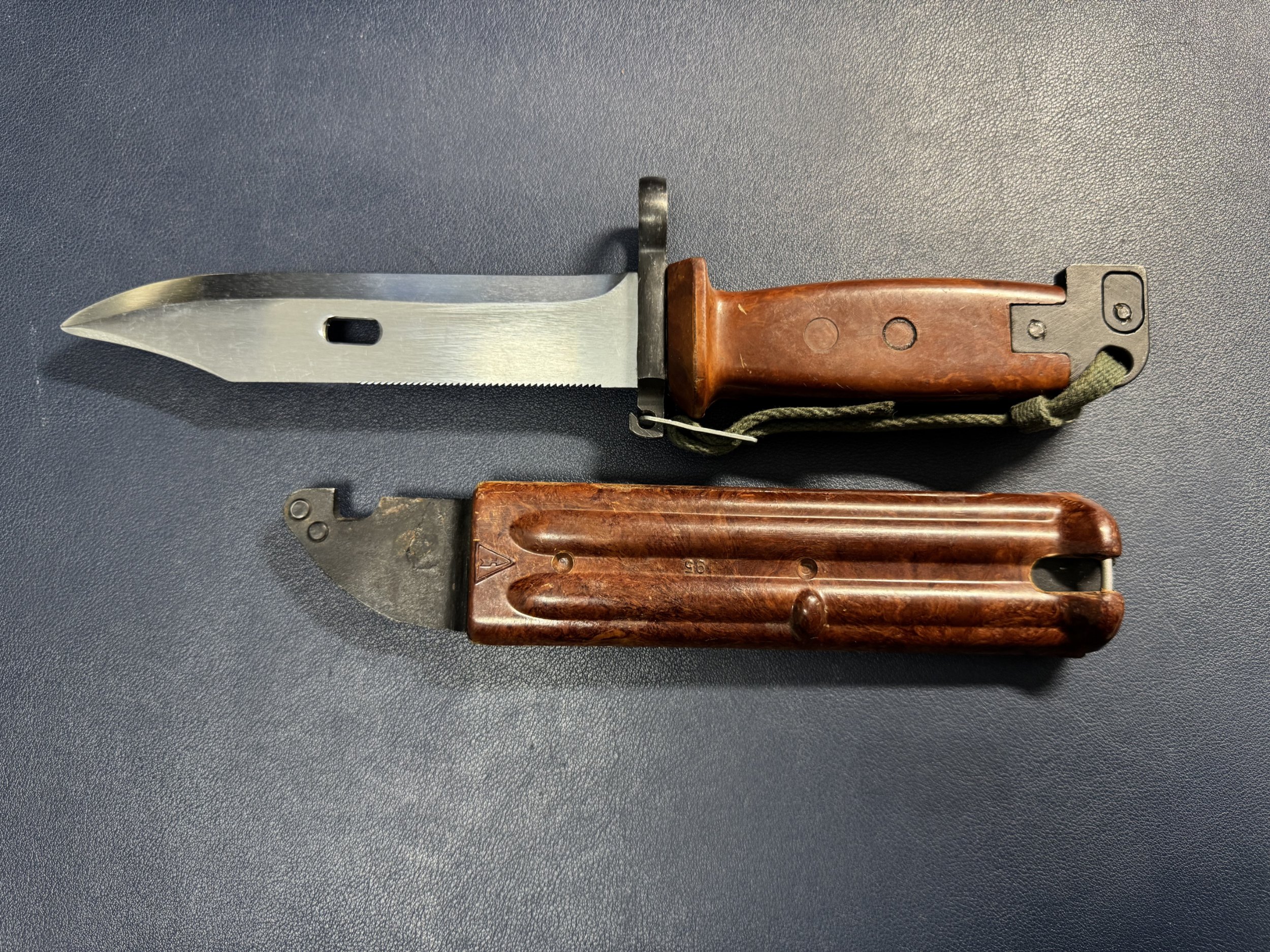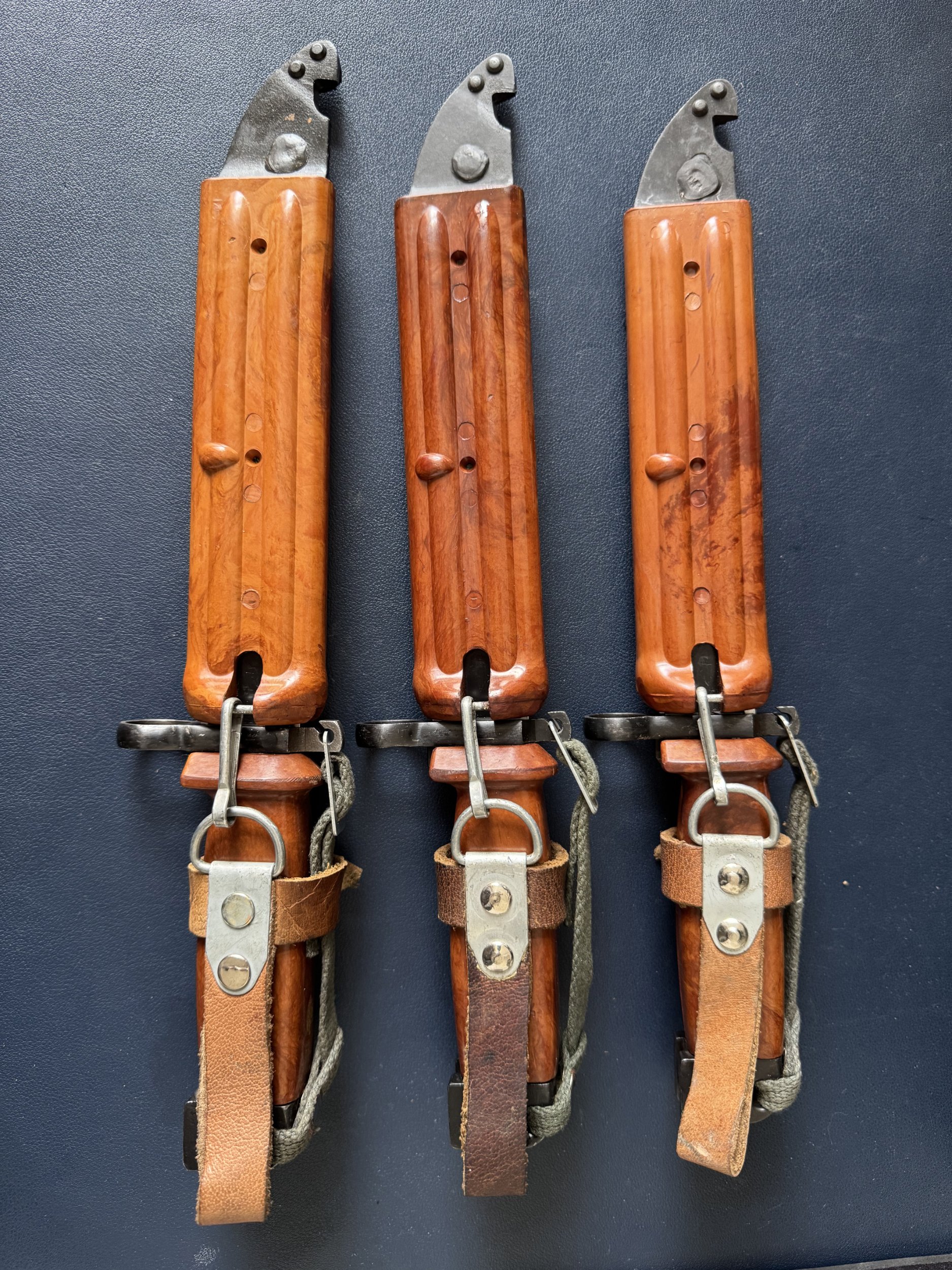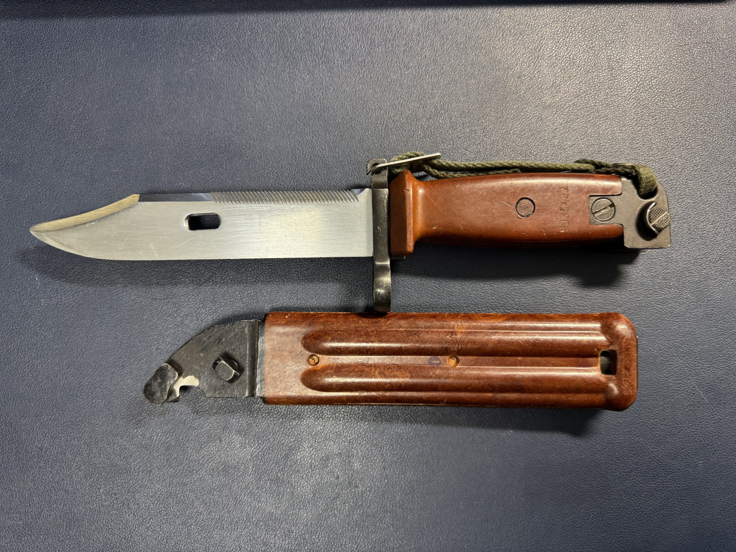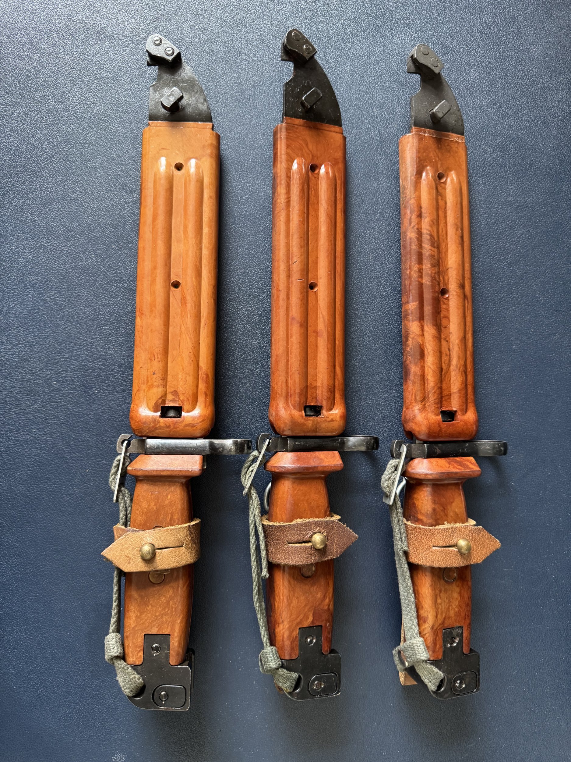 Yes, Mr. B, one of the Tabuk has a Soviet scabbard. I thought I made a mistake at first, but after your explanation, I suddenly realized that it is a very matching colorMr. B. wrote: Fri Nov 15, 2024 6:51 pm Another thing to consider is that these bayonets and scabbards have been handled by many different people at different times and in different places. People that have little or no knowledge of the items or collecting. Lots of mixed up things came out of Iraq! Anything is possible. I would doubt the Iraqis would have paired a Tabuk with a Russian scabbard during production.It would be interesting to see all the markings / stamps a number on your Russian scabbard. Most likely they were mixed during use or by handling afterward. Missing or damaged scabbards? At least the Russian would appear to match? I had an Hungarian Type I bayonet in an un-numbered Tabuk scabbard. How and why???? As a particular collector, I display only two Tabuks, both new / un-issued. One has matching numbers, the other one is un-numbered. Mike