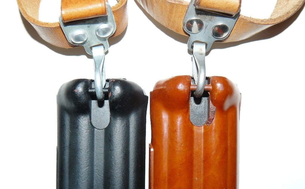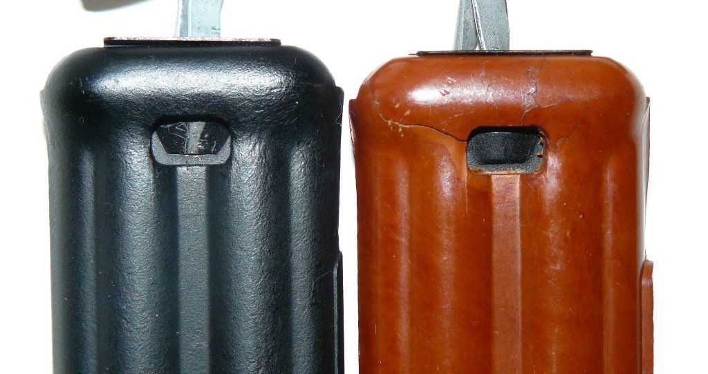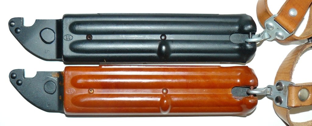 The black scabbard is made of the same material as the brown one, but it was simply given a very thick black coating.