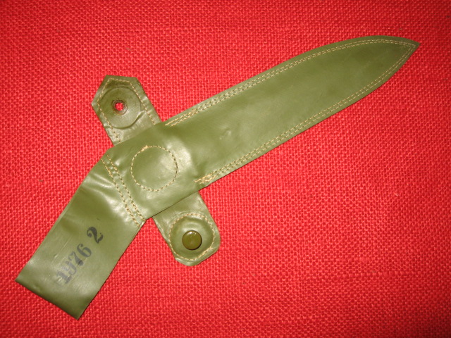 Recently there has been some discussion about these vinyl bayonet scabbards They were created for use during possible NBC warfare during the Cold War period in the 1970's to replace the standard leather scabbards. The leather items absorbed and retained Nuclear, Biological and Chemical agents that were a health hazard, The Czechs also created matching vinyl magazine pouches and other non-porous equipment as well. The bayonet scabbards and single magazine pouches came in both a light grey and medium green color. I have a green scabbard and have seen a grey plus pictures of both colors in several references. Recently someone thought that they also made them in brown. Anyone have any additional pictures or information? Mike