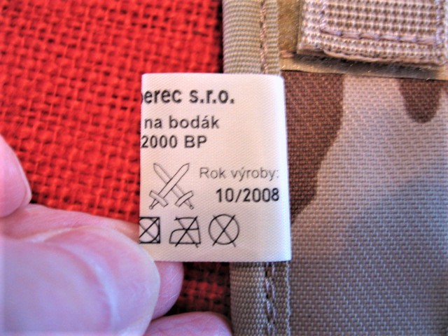 Mr. B. wrote: Wed Dec 27, 2017 1:34 am I just received a couple of Christmas presents from the Czech Republic. New style VZ-2000 ("LADA"), scabbards, but unfortunately without the latest bayonets. They came in the original storage bags with inventory labels, (2008). The Velcro belt loop has a plastic locating pin similar to the Lithuanian fabric hangers. One strange thing I noticed is that the snap & Velcro hilt loops cross in different directions!? Pictured with Type III VZ58 bayonets. Mike