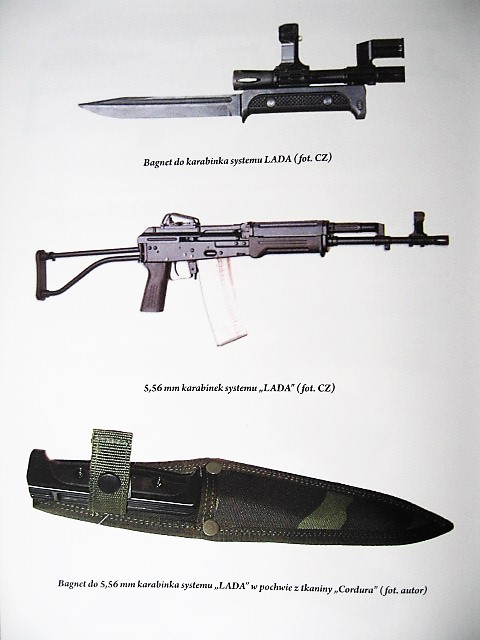 System was not in 5.56 at first, it was not adopted, there are 4 types of "LADA" bayonets. Yes they will fir the vz 58 scabbards, it was meant to replace the 58 in service, so if goverment can save up on scabbards it would be great finiancial decision. Ther eis nothing as early "LADA" prototypes (M63) this m63 name doesnt exist. Again, it did nto replace vz 58, that was done by CZ 805 Bren A1 in 2011, even then it took a lot of time and vz 58 might have been officialy relegated to the reserve status, but up until few years ago with the introduciton of BREN 2 it was still in active service. VZ 58 is still in use by theactive reserve units.