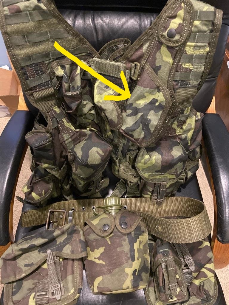 It appears that the conventional belt style of hanger has been replaced by more modern and functional designs. Here are borrowed pictures of more recent Czechoslovakian load bearing equipment. This is a version of a woodland camouflaged vest with an integral sheath for a bayonet or knife. I believe there also may be desert camo and other versions available. Mike