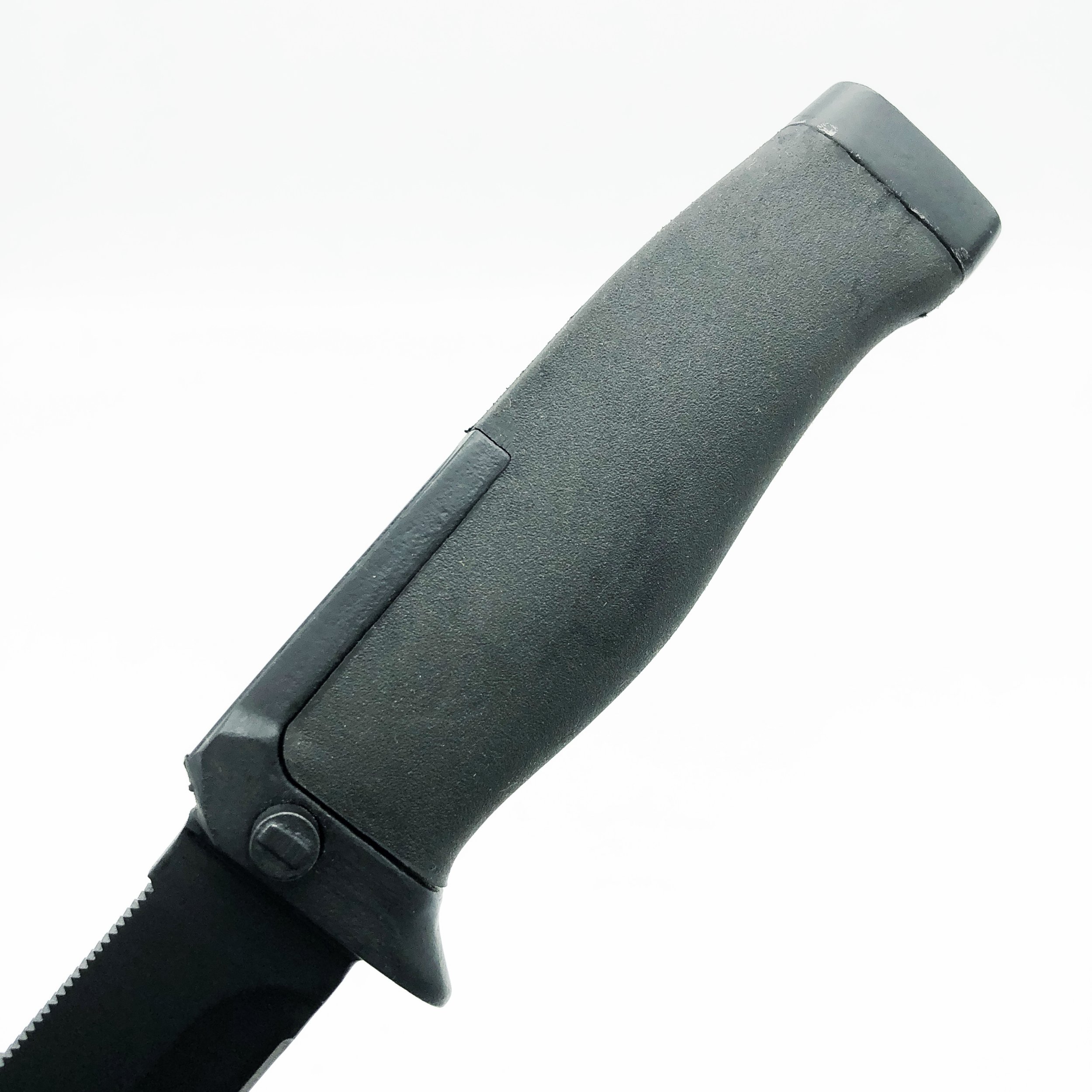 Here are a few more pictures I found. Several different variations with scabbards. Green, camo and black. Also note the small section of saw teeth on the top edge. Mike
