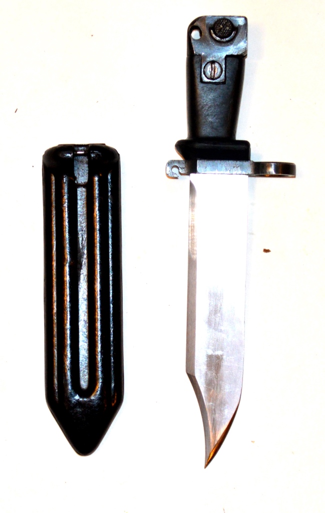 only "pistol bayonets" are so short even the knife on pistol makes me laugh as total nonsense , it seems someones handwork because if it was official modification it would be new untouched screw head and two pint fixed on the other side of pommel.. This will be perfect for the garden midget chinese unit..