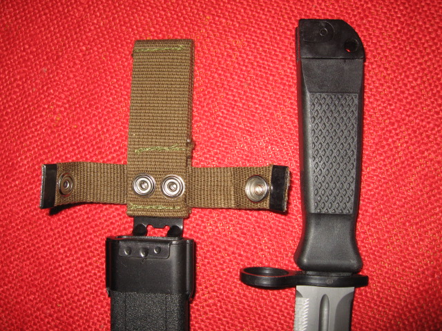 This is what is advertised as a Chinese Type 85 bayonet and scabbard. There is no verification that this bayonet was ever made for or issued to the Chinese military, (PLA). It appears to be an up-dated Chinese Type 81 bayonet that has been redesigned as a wire cutter and mounts on the Type 81 weapons. No documentation of the bayonet has been found but similar blades can be found in military pictures. The bayonet I received came in a fitted "presentation" type box and from all appearances seems to be non-military bayonet made for the collectors trade. The construction feels flimsy, especially the release catch which is almost toy like. Weak spring, small thin catch and machine screw that are not staked in place. No numbers or any type of marking. I purchased this item as a "representative" example and to find out what the small "lever" was on the back side of the scabbard cutter plate. It is a can opener! It is non-moving and is permanently held in place by rivets. Mike
