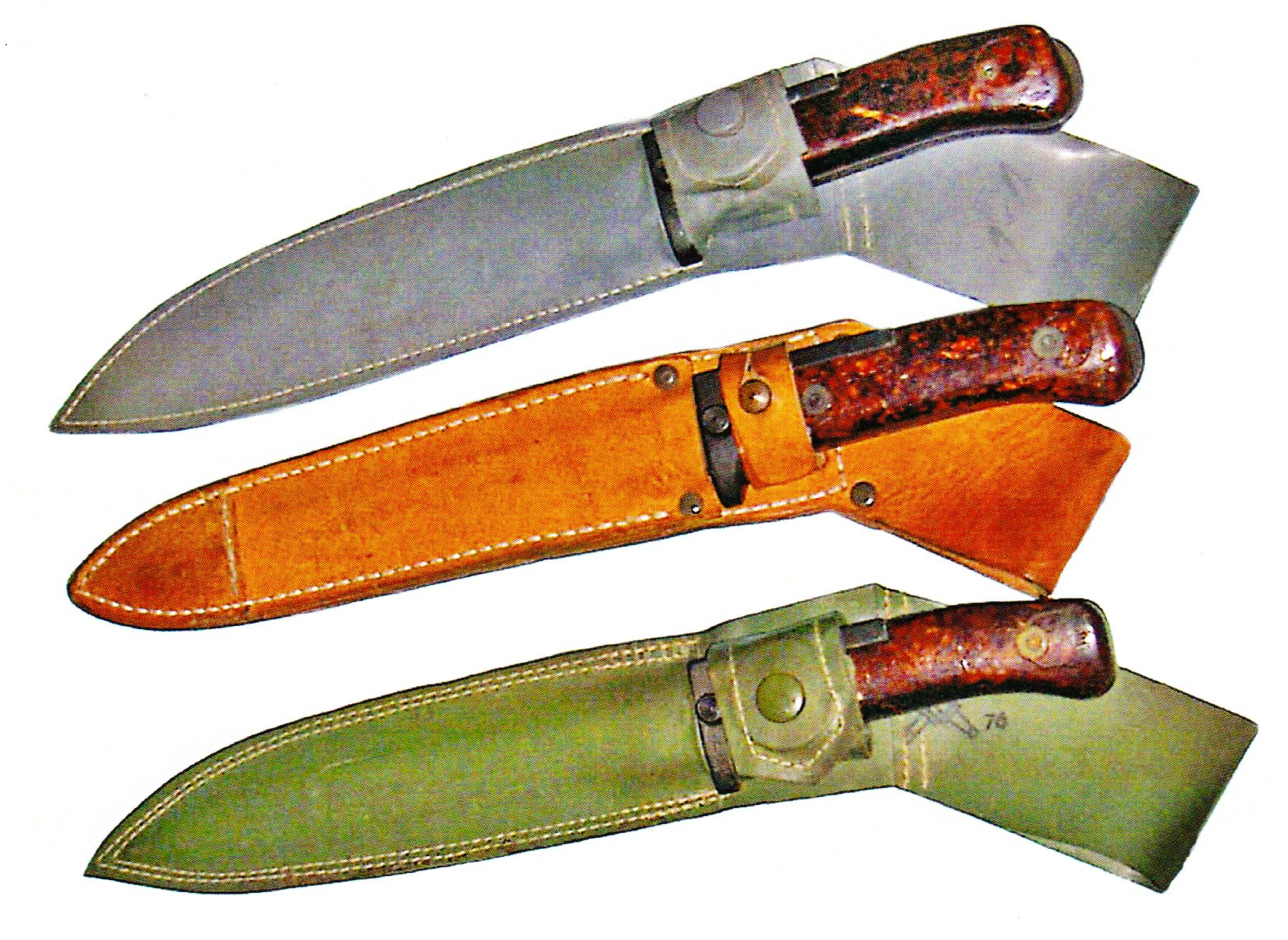 Another picture showing details and military acceptance markings of the grey and green NBC scabbards. Mike