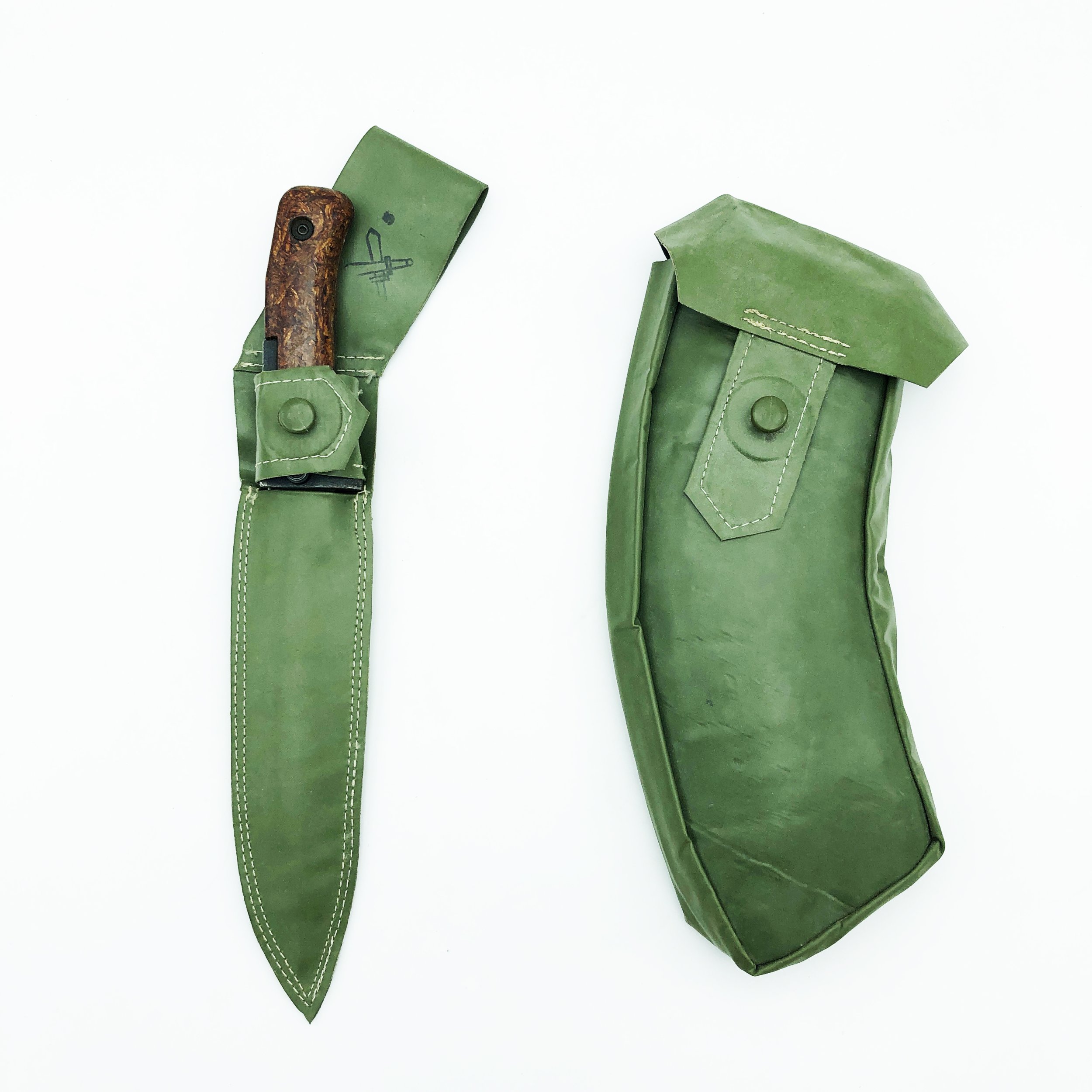Here are a few more pictures of the GREEN VZ58 bayonet NBC scabbards along with a matching mag pouches and a belt/sling. One picture shows an assortment of markings and dates. Note that the oldest date, (1975), scabbard has slightly different stitching on the hilt strap.