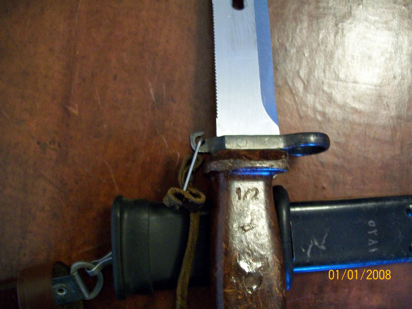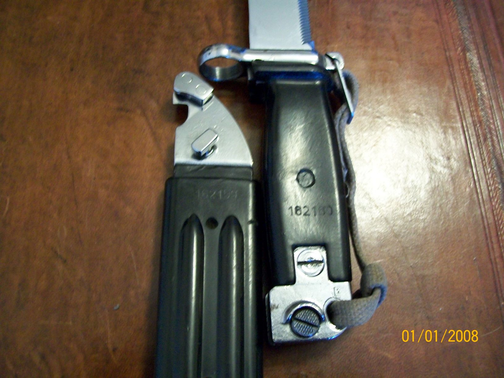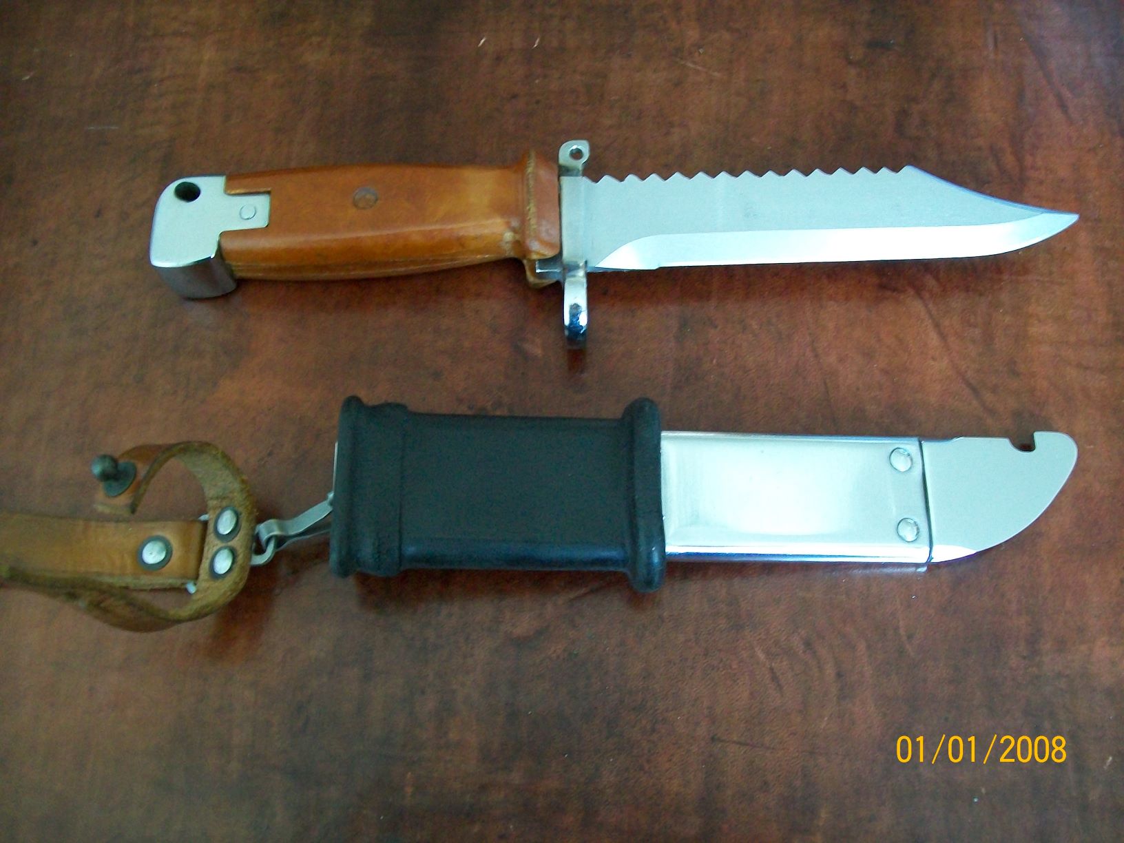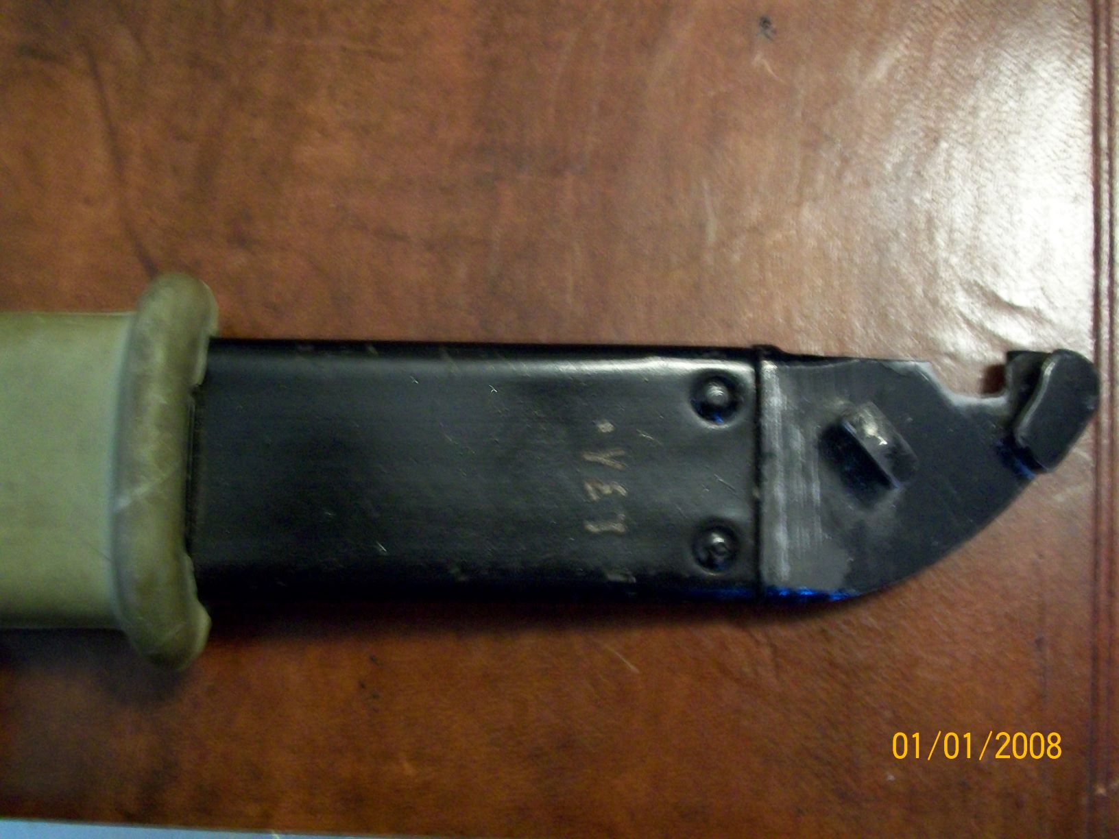 You can see a yugoslavian chromed, a polish 6H4 chromed, an early russian (the first picture and the last) with a particular scarbard (without rubber and a particular hanger) and two pictures of a maadi with a white rubber and no sawteeth.