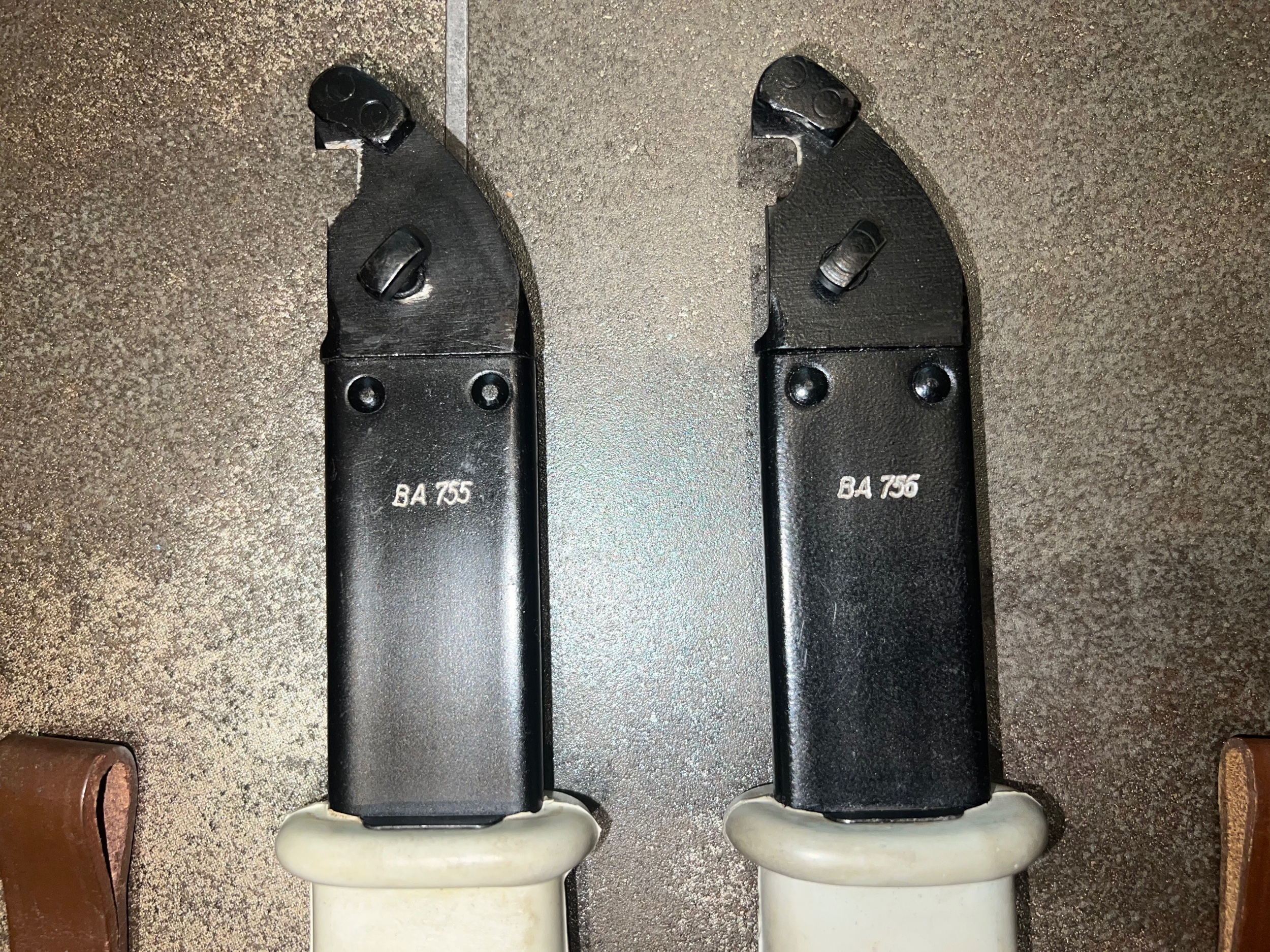 Super nice! Original and like NEW with consecutive numbers! Very nice find. For me these two set the standards for the flat pommel bayonets. Also note that the BA series is unique as all the ones confirmed have only three numbers. Probably a little more scarce that the others?