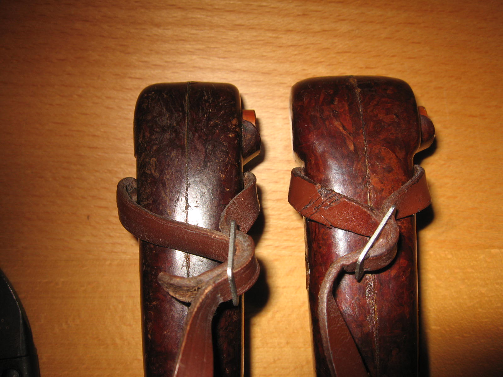 Adding to this topic my two examples. They would then be a 1965 production. They appear quite unused with single piece leather hangers.