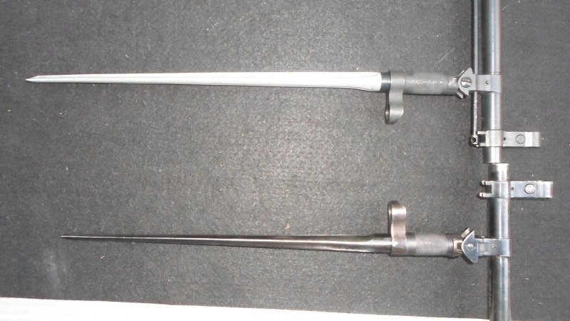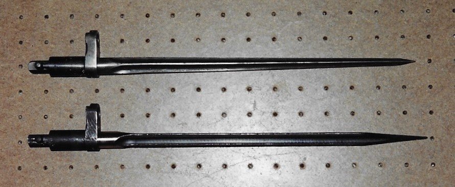 Pictures from my previous collection comparing a standard Type 53 bayonet with the unusual sharp pointed ones. Mike