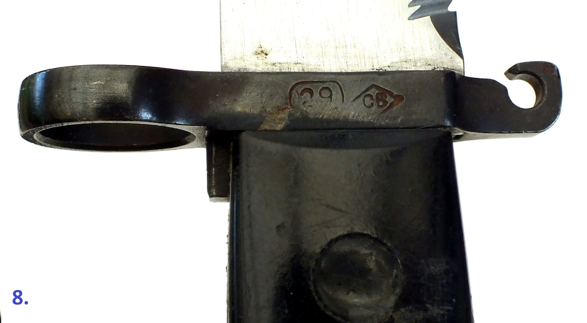 The numbers on the bayonets have been very neatly removed,,, rarely re-numbered with electro-engraving. Pictures 10., 11., 12.