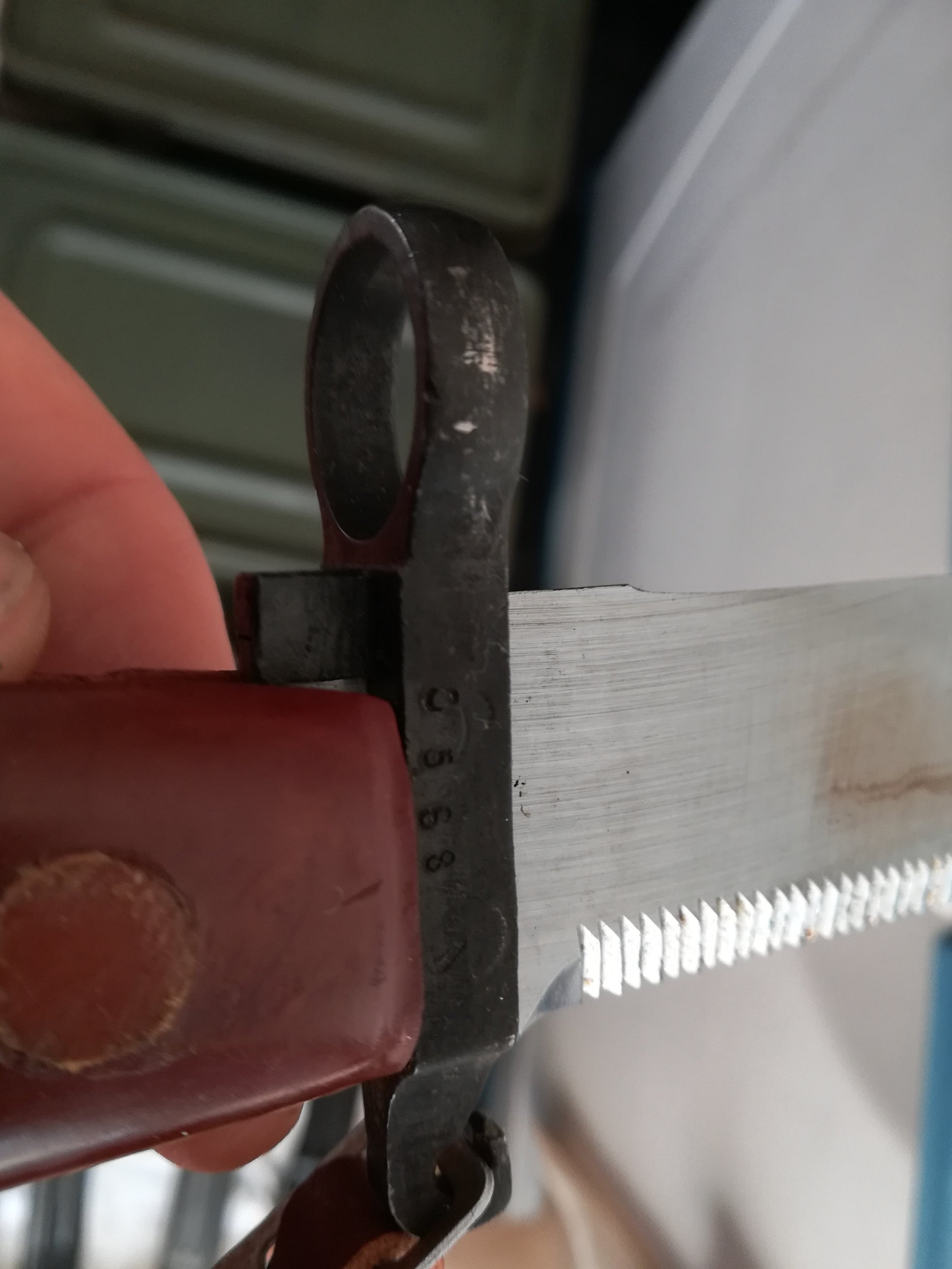 This bayonet, without scabbard, has a peculiarity. A marking is engraved on one side of the AB 3221 blade and on the other on the opposite side, cross guard, C 568. This last marking seems to have been carried out as on Polish bayonets. Do you have an explanation?