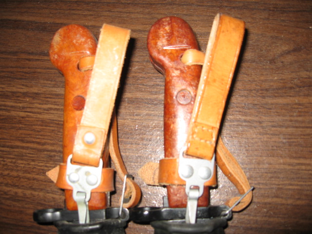 Here are close-ups of the painted vs blued scabbards and the flat vs domed rivets. Also note on the above pictures that some of the hanger belt loops are sewn others have a rivet. Mike