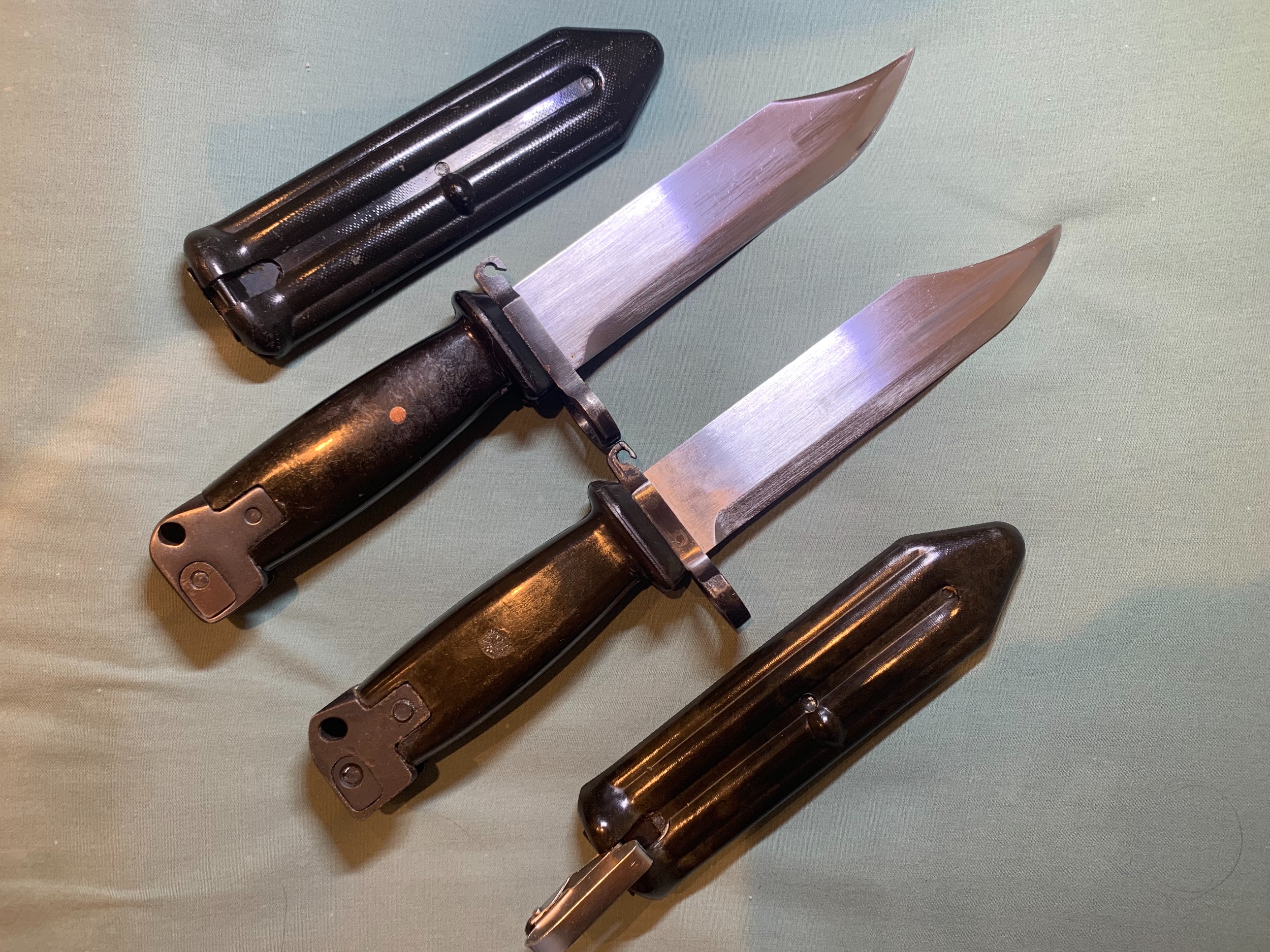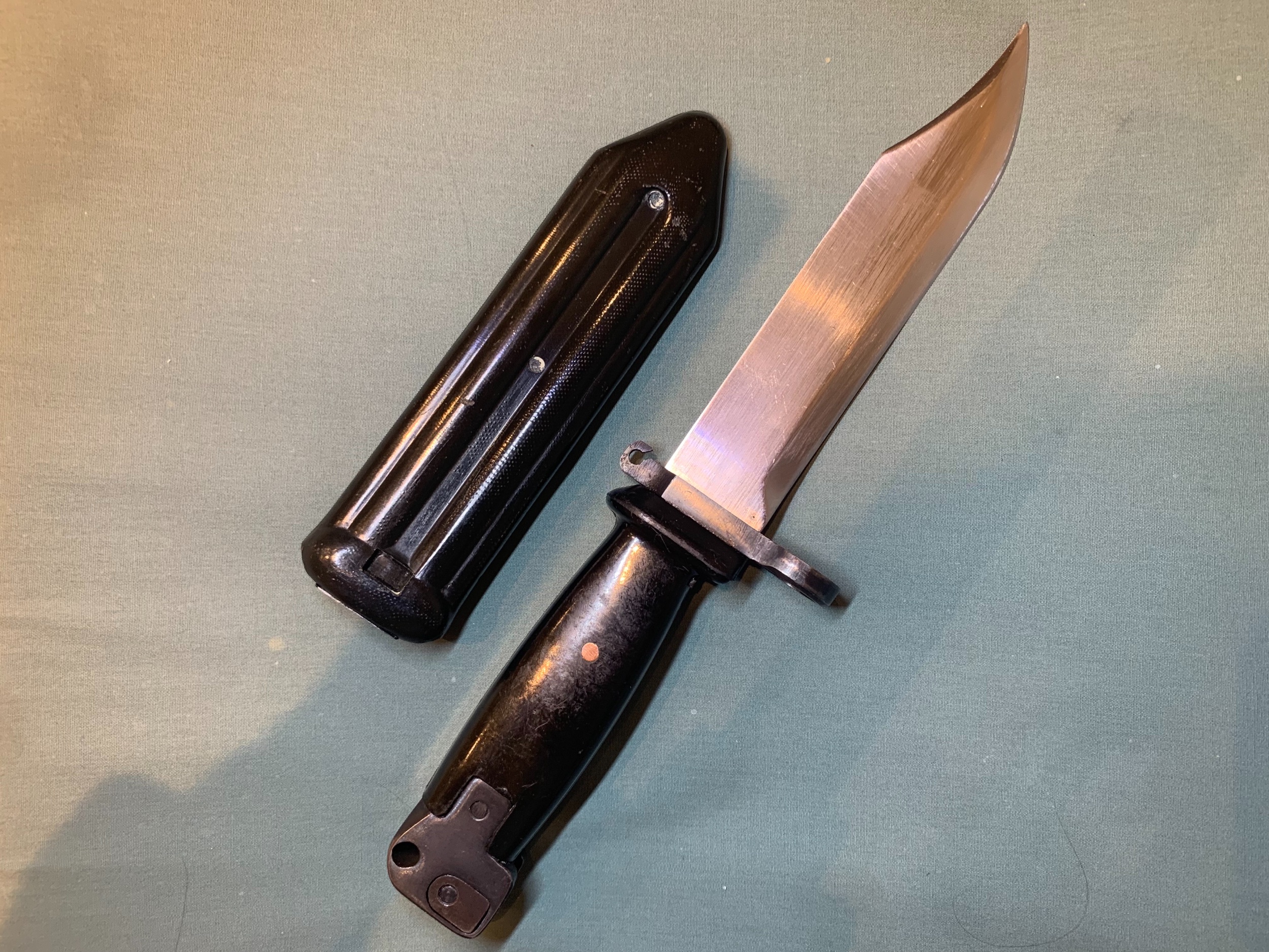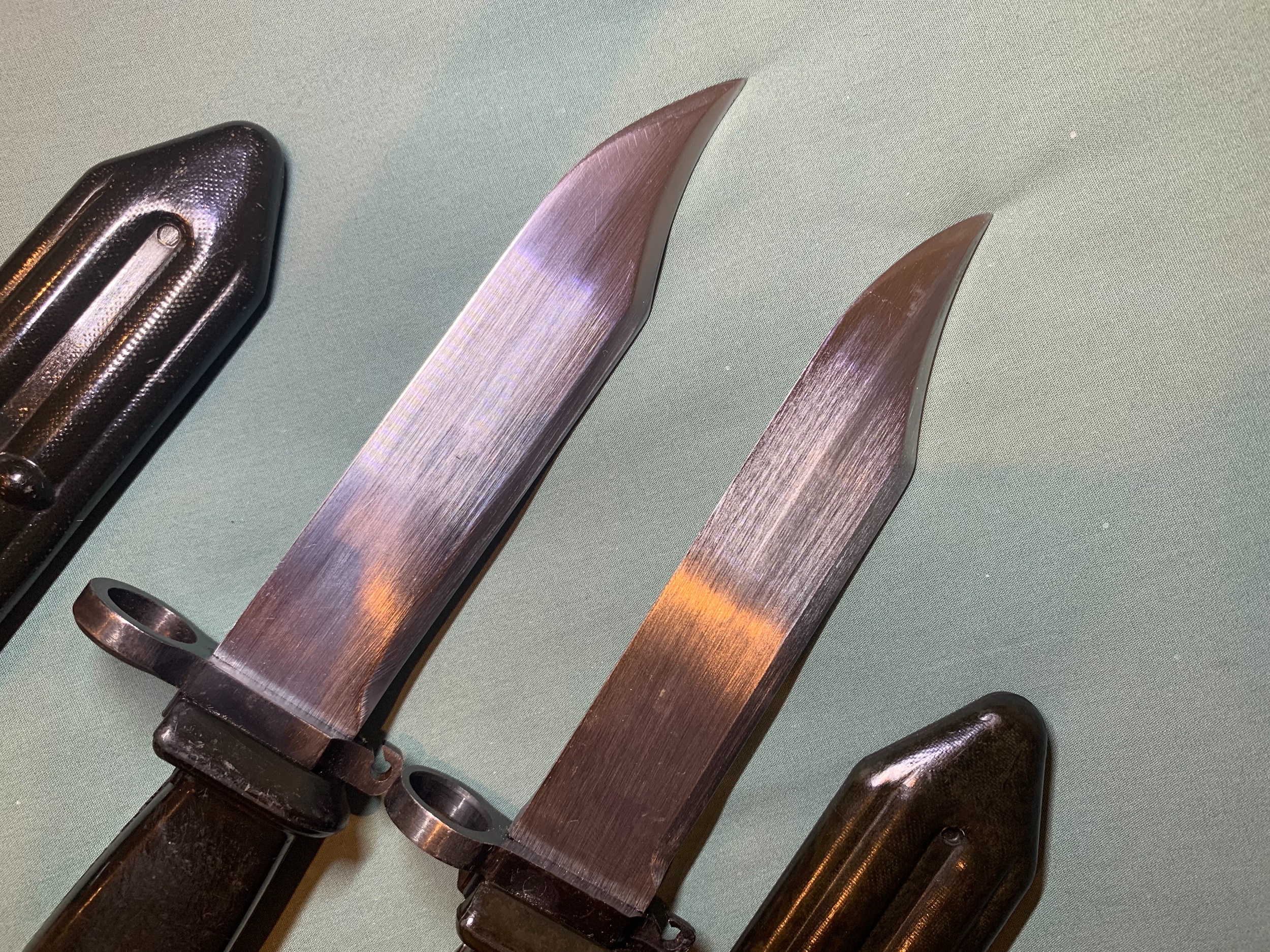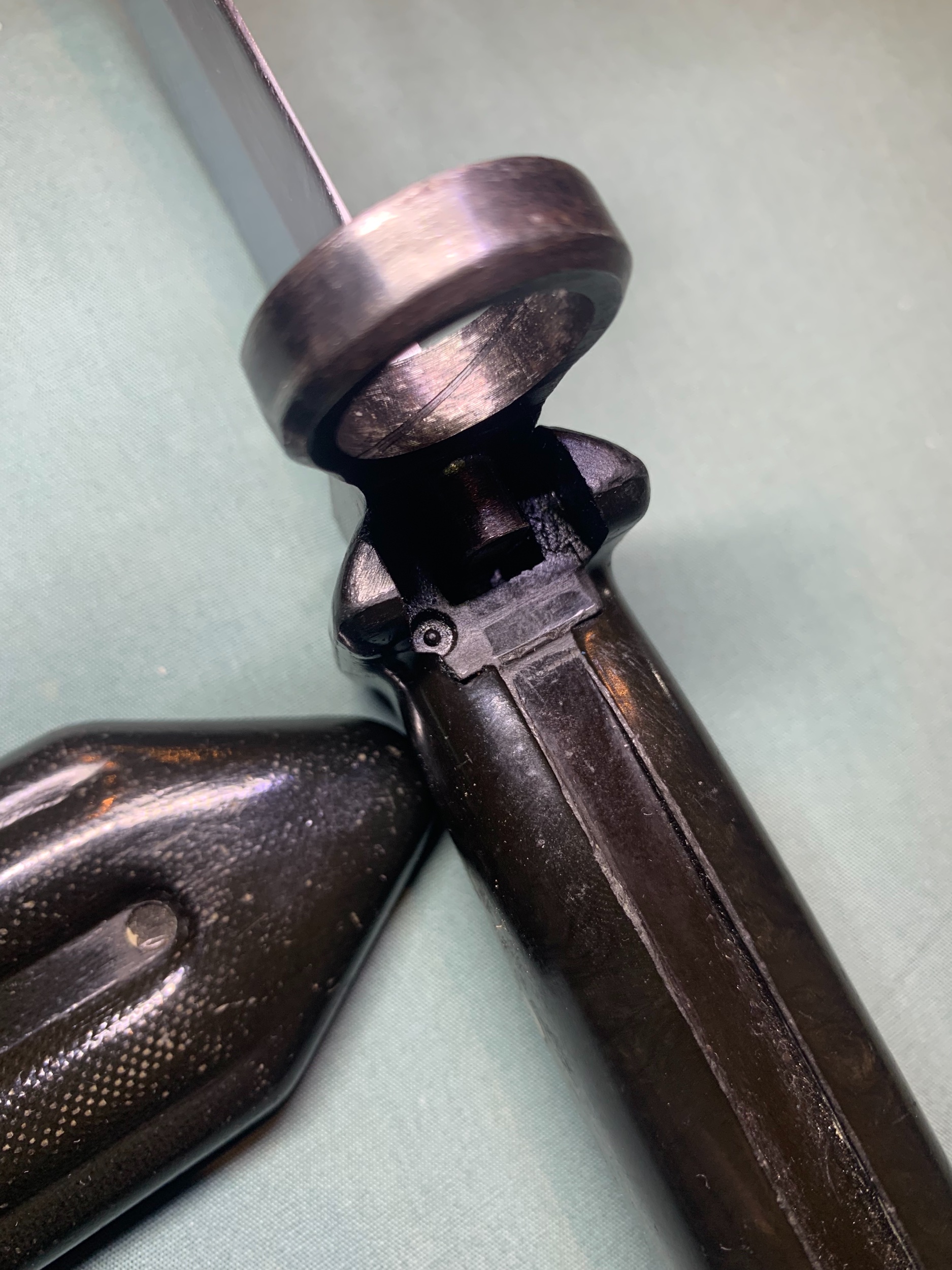 Very interesting! I have never seen one like this, but not a surprise. Lots of little variations, almost like a prototype when just starting production. These bayonets were not arsenal made and not intended for military use. They were made by various small independant manufacturers for the commercial / collectors market. They were made to only basic specifications and very little if any quality control. Difficult to find any two exactly the same.