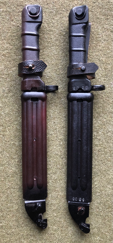 No serial number on the bayonet or scabbard.