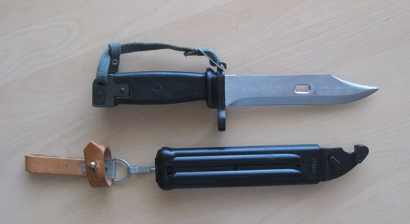 Another nice example. Yugoslavian AKM 6X4 Type II bayonet and scabbard. It is in excellent condition with matching numbers and has the correct accessories. You are building up a nice collection. When you have the time and interest you could sit down and compare your E.G. Type II with this Yugo Type II. They are both all black and Type II, but it is interesting to find all the differences. Congrats on your big day! Have fun, Mike