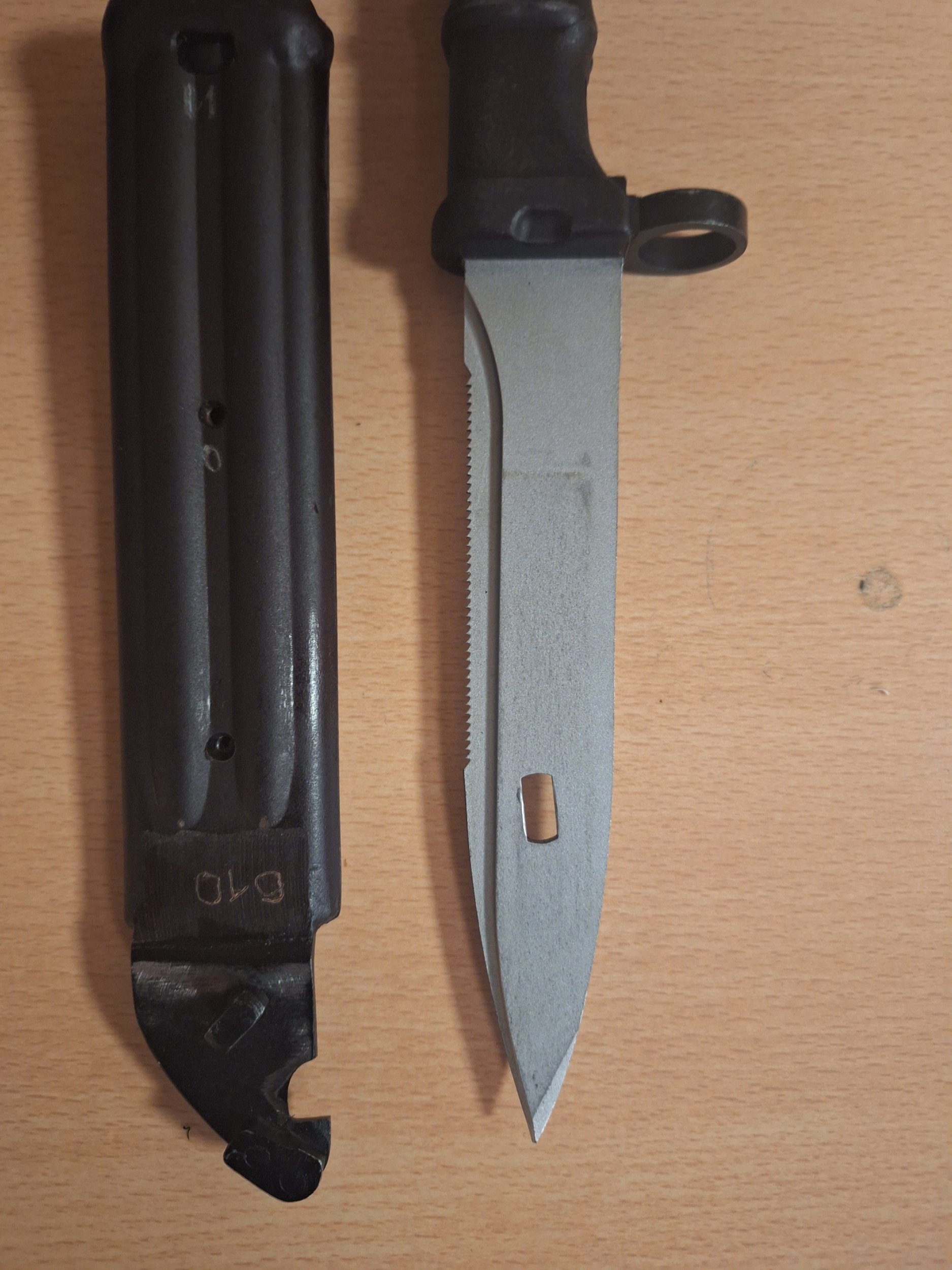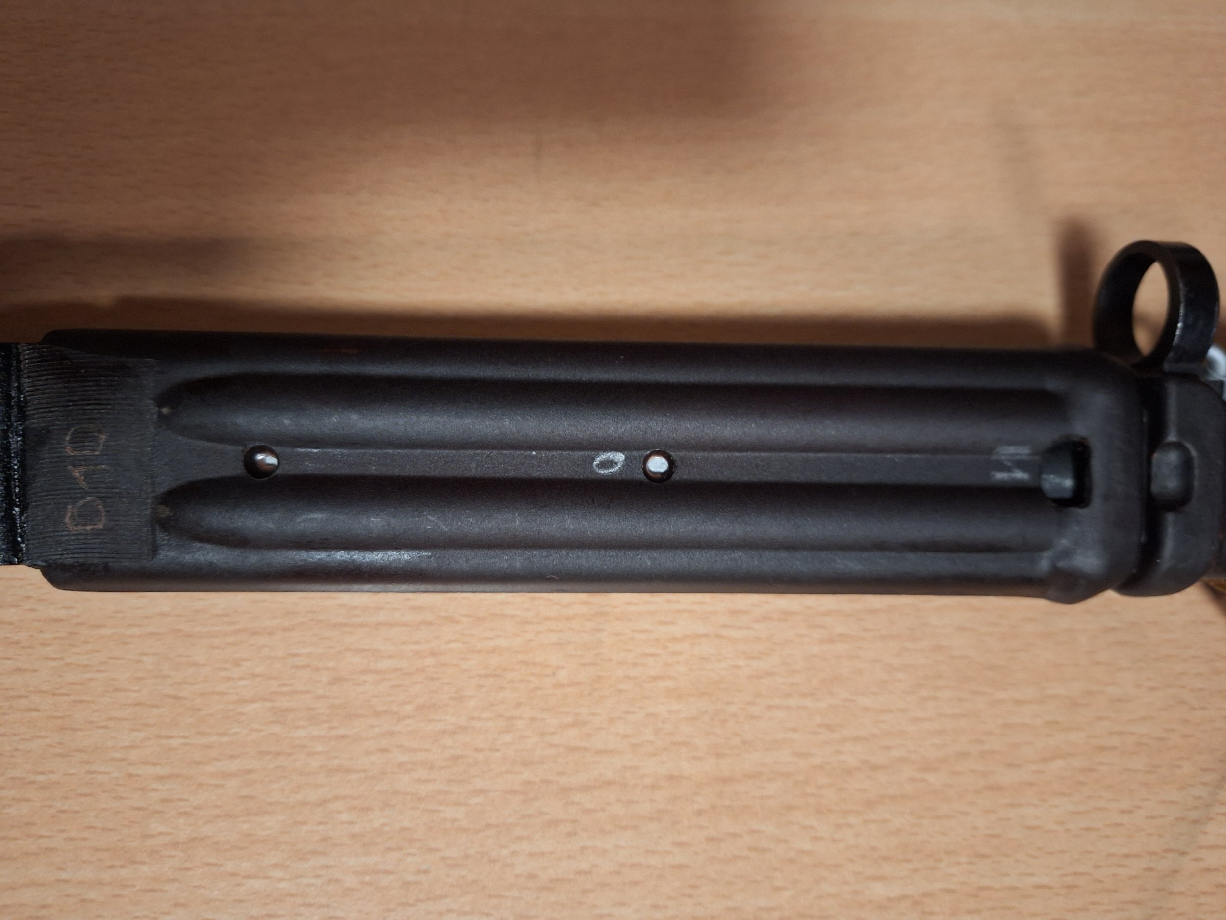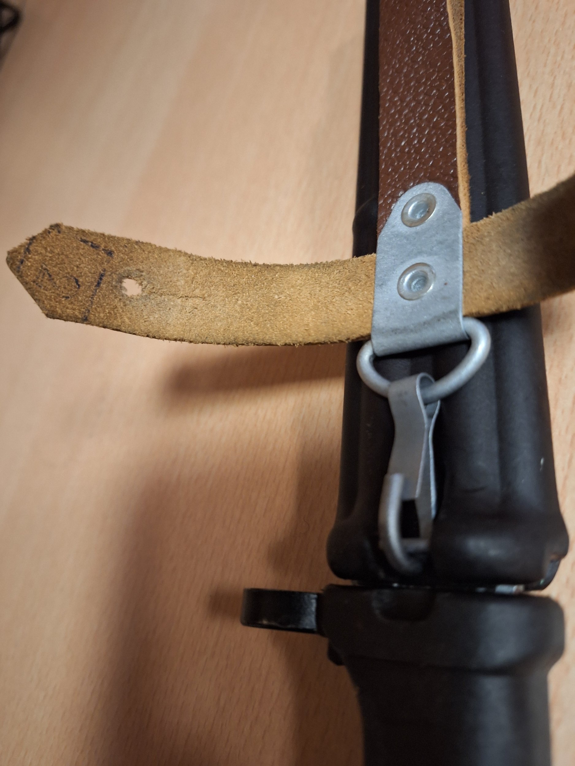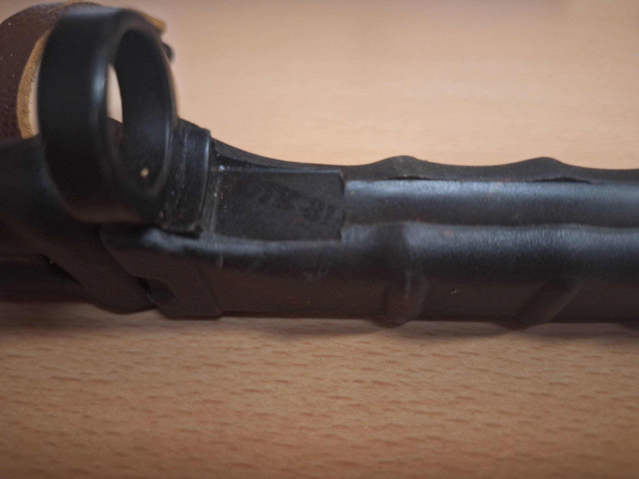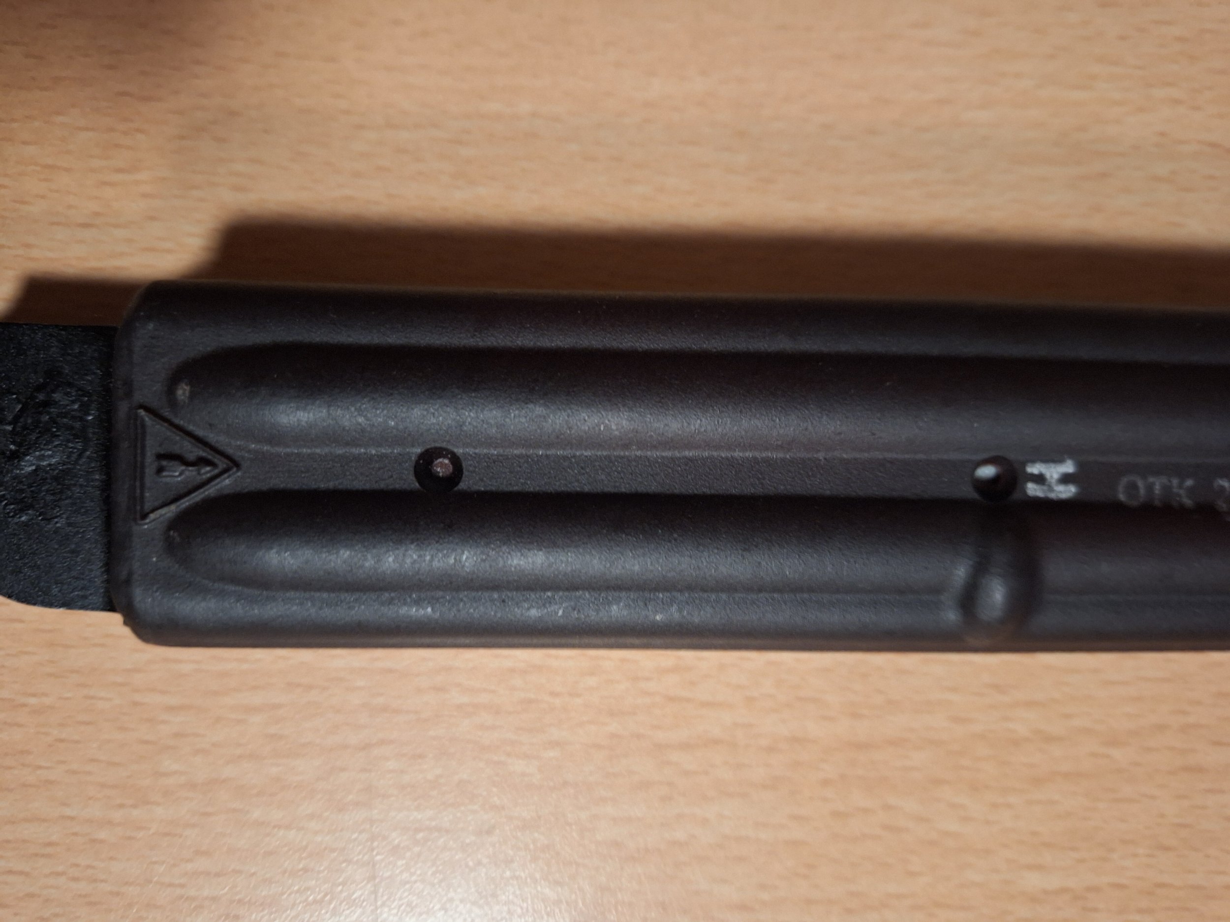 Hi Bas, I am not sure what to tell you. It appears to me to an original, as issued, Russian AK74 6X5 bayonet and scabbard. It is the early first variation with the narrow crossguard. Mine is Plum colored with specks. I can not tell if yours is plum or black from your pictures. I understand about the missing or different markings. Both the bayonet and scabbard should have the raised mold numbers. The inspection and proof marking are usually on the ricasso. I have never seen them on the flat area behind the muzzle ring? The ink stamps are easily removed when cleaning especially with solvents. The hand etched issue numbers indicate it was paired with a weapon.