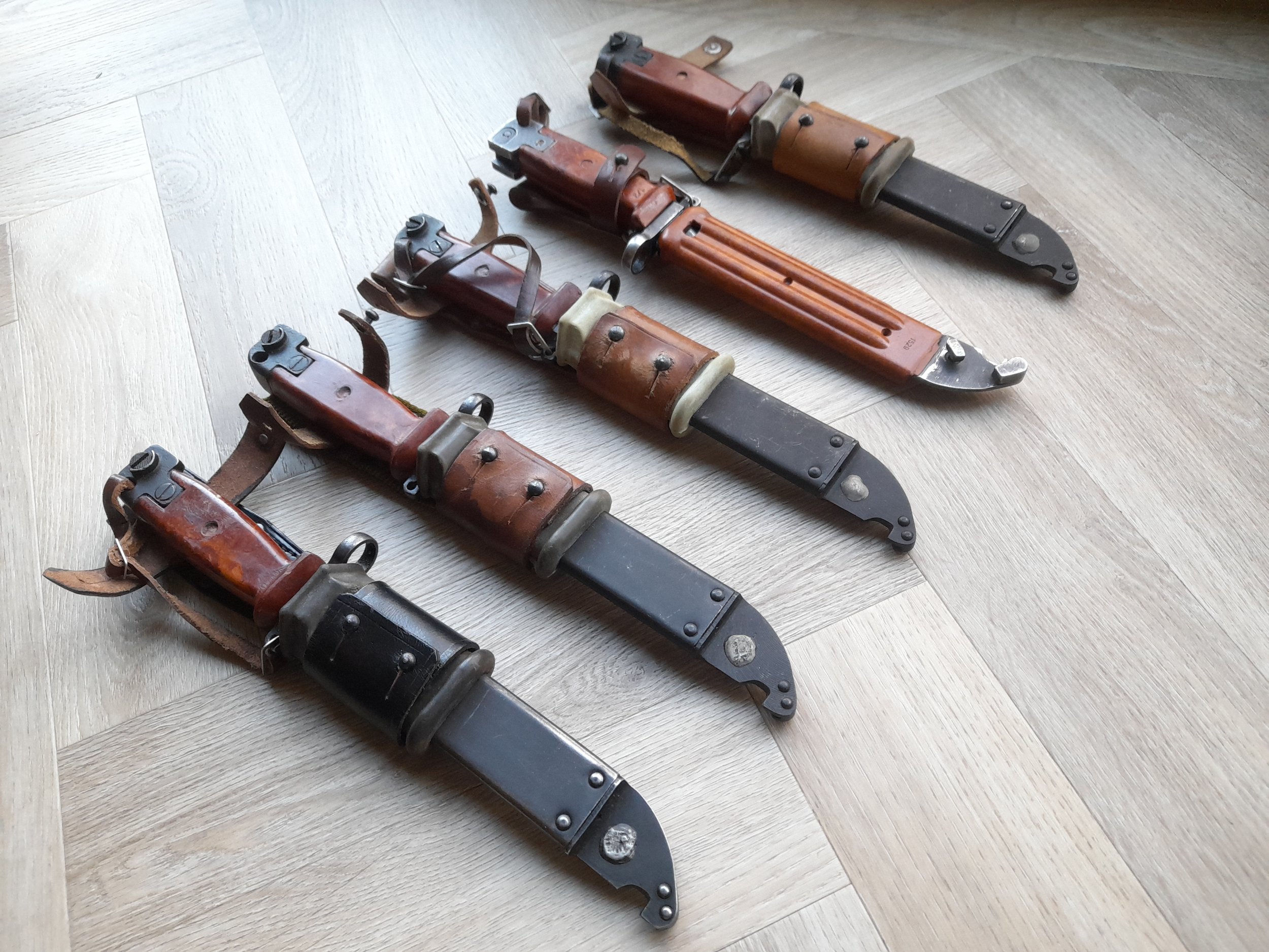 Due to some duplicates if my collection, I am selling some of the Romanian models. I have the AIMS-74 in every variant regarding the frogs (green nylon, black leather and brown leather), and a 6x4. All are in very good condition, some have the dreaded wear on the open arrow Izhevsk logo on the handle. Requests for additional pictures or info more than welcome!