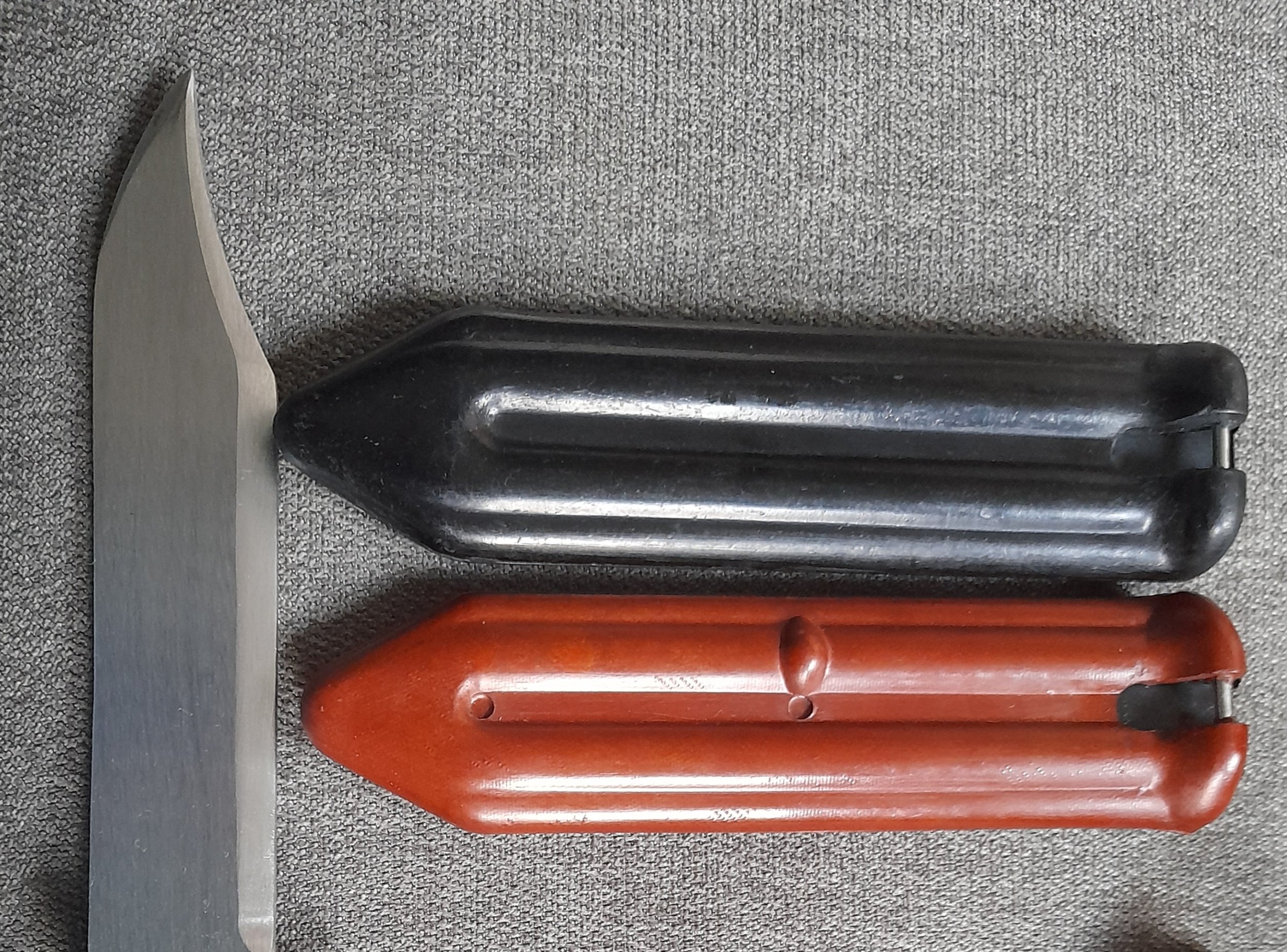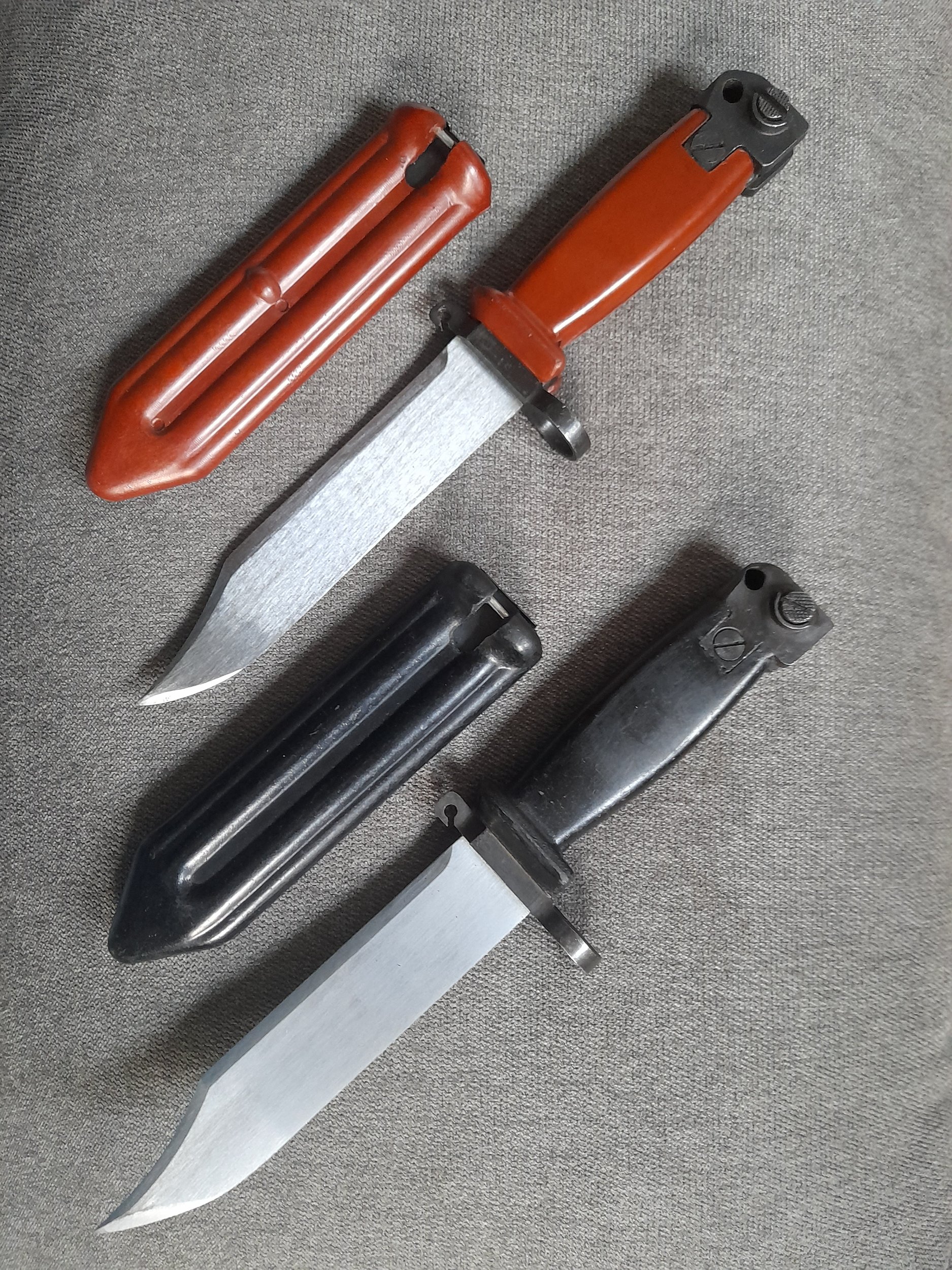 I just received the orange variant of the Chinese AKM bayonet. Is it correct that, besides the bulge on the orange variant's scabbard, the scabbards can also differ in length? The orange one is about a centimeter shorter than the black one.